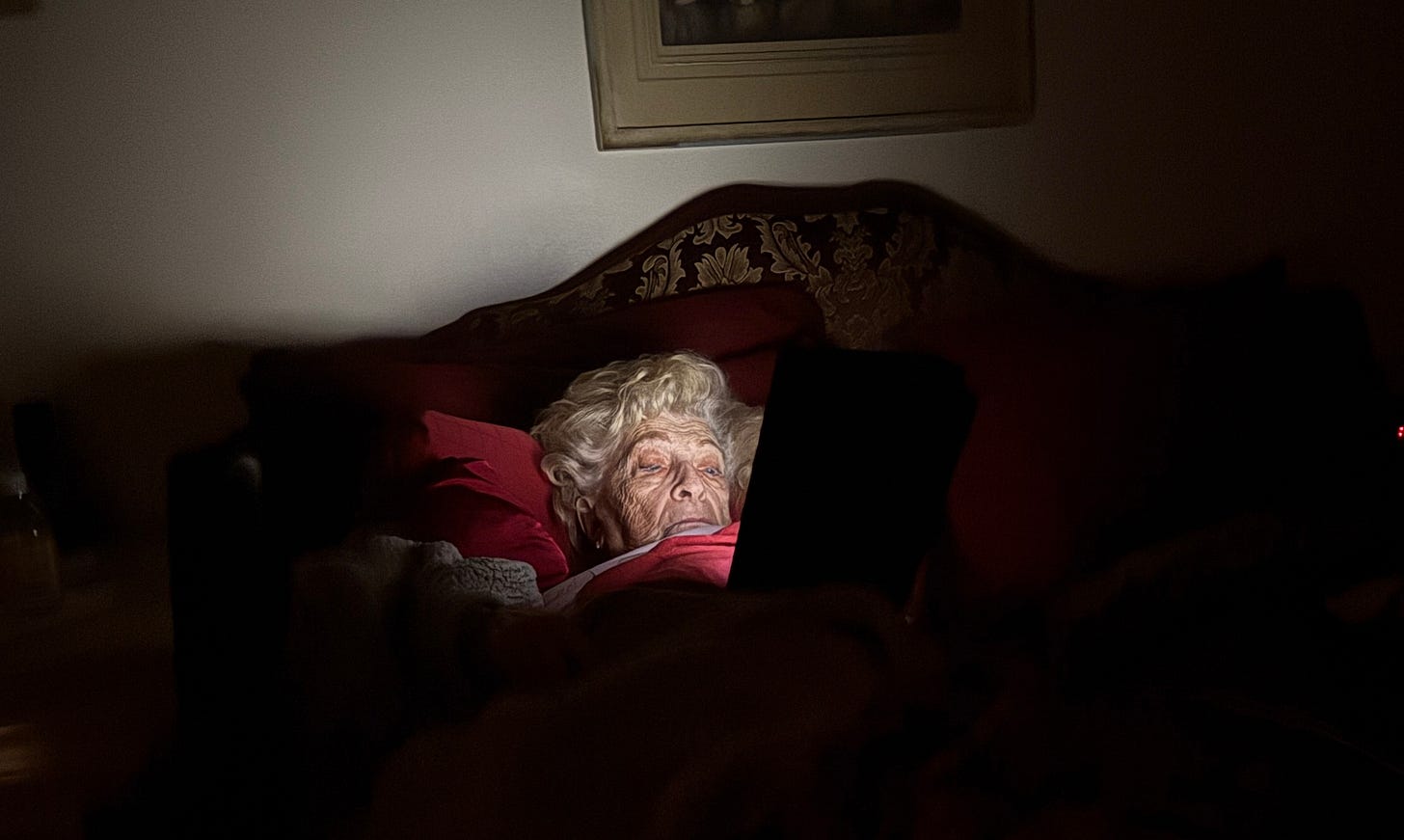 When she’s home, she’s in bed—her headquarters, her command center. Her iPad is always within reach: bridge, Wordle, number games, sometimes a show. The big TV in her room mostly stays off now—it’s usually only on when I’m there, when I sit beside her and we watch something together.
